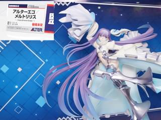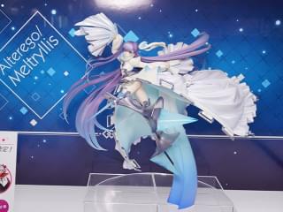 アルターの「FGO」では、メルトリリスが彩色されて初展示。写真だと比較対象がないのでわかりにくいのですが、これ、ものすごく大きいのです。FGO版のメルトリリスの白いドレスはもともとボリュームがあるのですが、それが大きくたなびくポーズでの立体化。