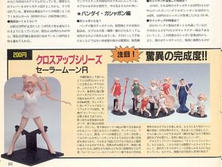 昔のカプセルフィギュアでは単色やデフォルメのものが中心でした。ちゃんと塗装ずみでリアル頭身のフィギュアがカプセルで登場したのは1994年にバンダイベンダーから出た「HGウルトラマン」が最初。その後も怪獣やヒーロー系を中心に展開されていくのですが、95年12月に「DX美少女セーラームーン」が登場します。これがバンダイのカプセルフィギュアとしては最初期のフルカラーの美少女キャラアイテムとなります。ですが、ガレージキット的な造形を取り入れた商品としては94年に「クロスアップシリーズ セーラームーンR」というものが発売されています。これはそれなりの大きさのPVC製フィギュア本体に、プラ製のセーラー服や武器パ-ツを装着するというもの。おそらくこれがマスプロダクツで美少女ガレージキット的な造形を取り入れた商品のほぼ最初の例。