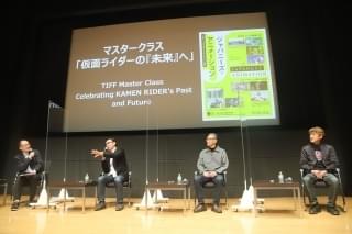 生誕50周年を迎え、昭和・平成の仮面ライダーシリーズに携わった関係者が「仮面ライダー」のこれまでとこれからを語る、第34回東京国際映画祭ジャパニーズ・アニメーション部門内のプログラム「TIFF マスタークラス『仮面ライダー』の未来へ」が11月3日、都内で行われ、東映・取締役の白倉伸一郎プロデューサー、ジャパンアクションエンタープライズの代表取締役社長を務める金田治監督、脚本家の三条陸氏、アニメ評論家の藤津亮太氏が出席した。