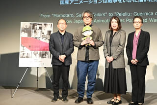 戦後80年の今年公開される「ペリリュー 楽園のゲルニカ」への思いが武田氏から語られたあとは、1945年公開の国策映画「桃太郎 海の神兵」についての解説が、堀氏、佐野氏から語られる。日本初となる長編アニメーションとして位置付けられた本作を鑑賞した手塚治虫さんが「アメリカのアニメーションに匹敵するレベルのものが初めてできた」と話したことも紹介された。