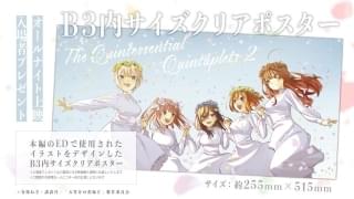 3週目入場特典の「EDイラスト クリアうちわ」は、本編のエンディングで使用されたイラストを使用している。また、7月29日に全国5カ所で行われる「TVアニメ『五等分の花嫁∬』オールナイト一挙上映会」では、「B3内サイズクリアポスター」を来場者にプレゼント。こちらも本編エンディングのイラストがデザインされている。
