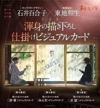 6週連続入場特典の第3弾として「繋がる私たちの未来〈正宗〉ビジュアルカード」が登場。10月6日からの第4弾特典「繋がる私たちの未来〈沙希〉ビジュアルカード」、10月13日からの第5弾特典「繋がる私たちの未来〈みんな〉ビジュアルカード」を集めると1枚の絵が完成する。「未来へつなげる思い」というビジュアルコンセプトで、キャラクターデザインの石井百合子と美術監督の東地和生が描き下ろした。