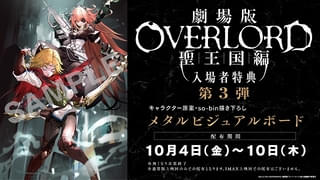 このほか、公開中の「ルックバック」は最後の入場特典となる「FINAL 特典 藤本タツキ×押山清高描き下ろしコラボ複製色紙」が配布され、「劇場版『オーバーロード』聖王国編」は3週目入場特典「キャラクター原案・so-bin先生描きおろしメタルビジュアルボード」が登場する。